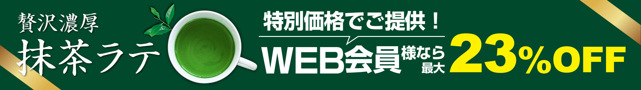 「贅沢濃厚 抹茶ラテ」など一部商品が、WEB会員様なら最大23%OFFの特別価格にてご購入いただけます。